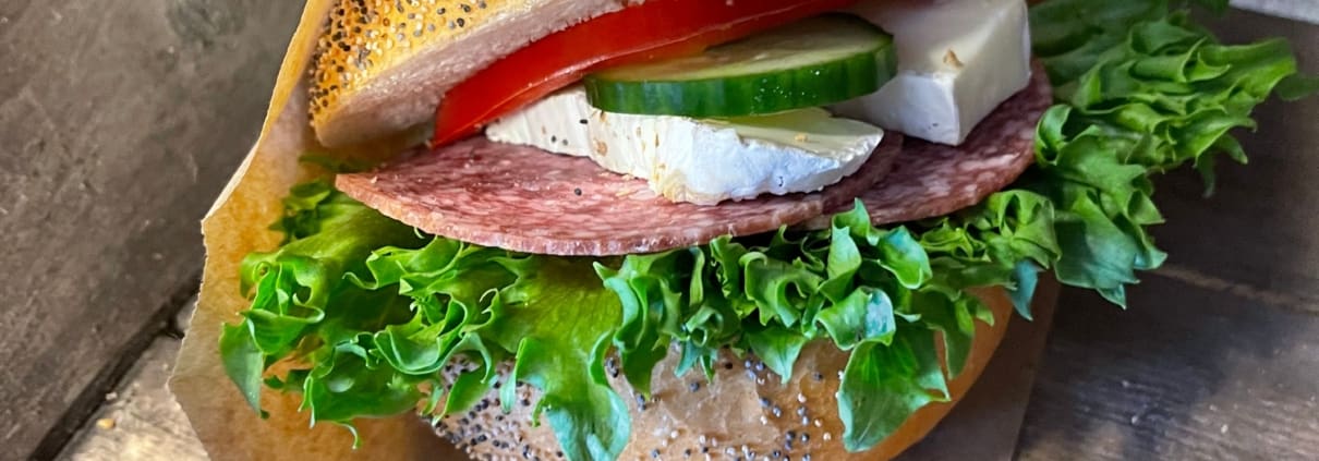 Nybakade med härligt Bregottsmör* sallad, gurka & paprika
