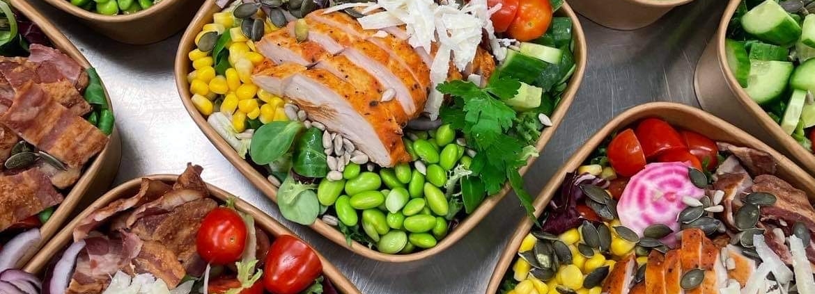 Våra fantastiskt goda sallader måste testas. Finns väldigt många att välja mellan och de levereras alltid med bröd, smör & dressing. Välj mellan pasta, quiona & bulgur.