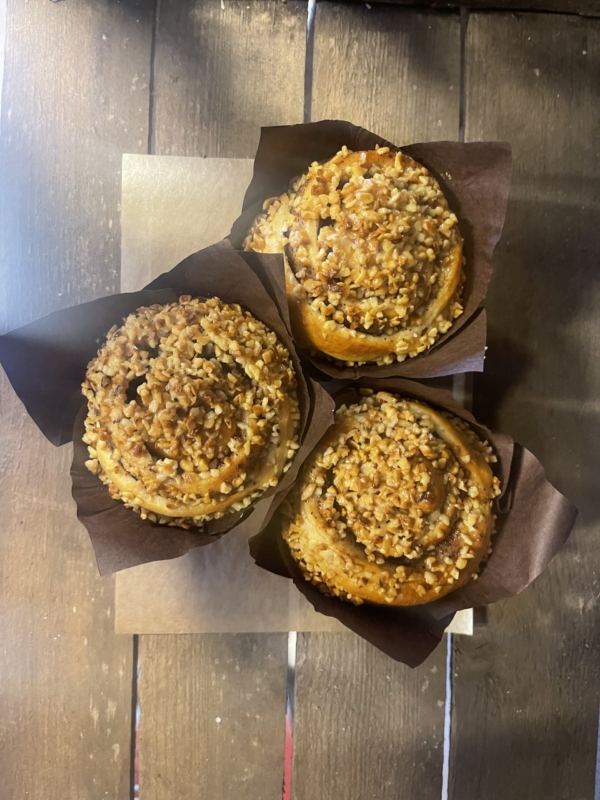 VETEMJÖL, vatten, vegetabilisk olja (raps, kokos), härdat rapsfett, salt, emulgeringsmedel (E471, E472e), arom, vitamin A och D, ÄGGVITA, socker, HASSELNÖTTER, jäst, torkad glukossirap, vegetabiliskt fett (palm), glukossirap, kanel, potatispulver, modifierad stärkelse, majsmjöl, dextros, MJÖLKPULVER, druvsocker, fullhärdad rapsolja, emulgeringsmedel SOJALECITIN, konserveringsmedel (E202), stabiliseringsmedel (E412), surhetsreglerande medel (E330, E331), vanillin, mjölbehandlingsmedel (E300). Kan innehålla spår av: valnötter, mandel, sesamfrön.